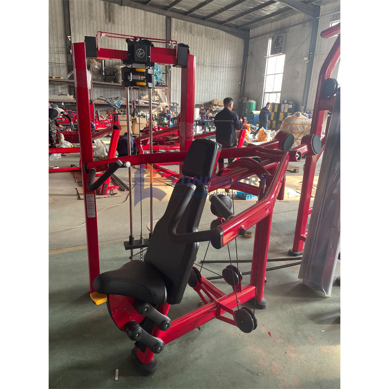 பின் லோடட் கன்வெர்ஜிங் ஷோல்டர் பிரஸ் மெஷின் தோள்களில் தசை, வலிமை மற்றும் சகிப்புத்தன்மையை உருவாக்க விரும்புவோருக்கு ஏற்றது. இது டெல்டாய்டுகள், ட்ரேபீசியஸ் மற்றும் ட்ரைசெப்ஸ் தசைகளை ஈடுபடுத்துகிறது, இது மேல் உடல் உடற்பயிற்சிகளுக்கு ஒரு சிறந்த கருவியாக அமைகிறது.