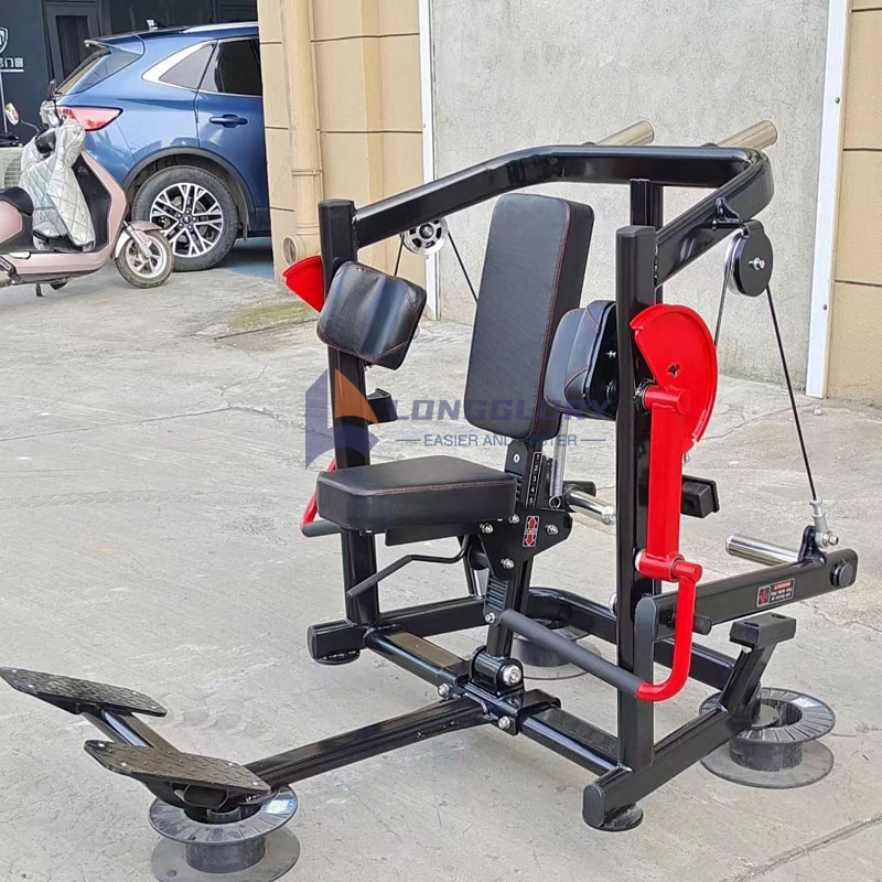 2. இருக்கை உயரத்தை சரிசெய்யவும்: இருக்கையை அமைக்கவும், இதனால் உங்கள் தோள்கள் இயந்திரத்தின் பிவோட் புள்ளியுடன் சமமாக இருக்கும். உங்கள் கால்கள் தரையில் உறுதியாக இருப்பதை உறுதிப்படுத்திக் கொள்ளுங்கள், உங்கள் உடல் நிலையானது.