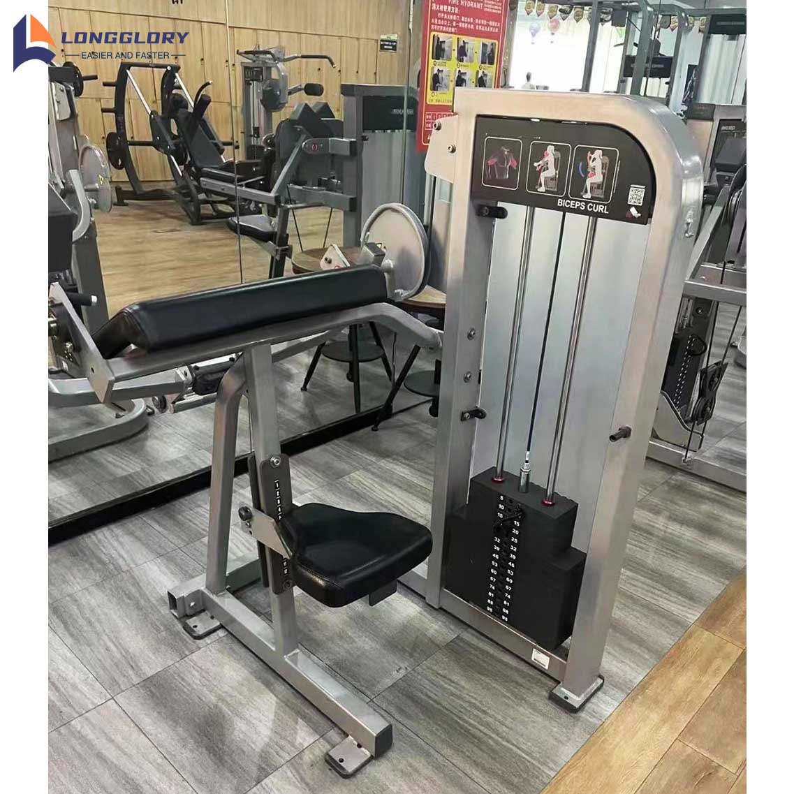 பைசெப் சுருட்டை இயந்திரம் என்பது ஒரு நிலையான-நிலை வலிமை பயிற்சி சாதனமாகும், இது டம்பல் சுருட்டைகளின் இயக்கத்தை சரிசெய்யக்கூடிய எதிர்ப்புடன் உருவகப்படுத்துகிறது. இது குறிப்பாக பைசெப்ஸில் கவனம் செலுத்துகிறது, அதே நேரத்தில் தோள்களில் திரிபுகளைக் குறைக்கிறது, இலவச எடை பயிற்சியுடன் ஒப்பிடும்போது காயத்தின் அபாயத்தை குறைக்க உதவுகிறது.