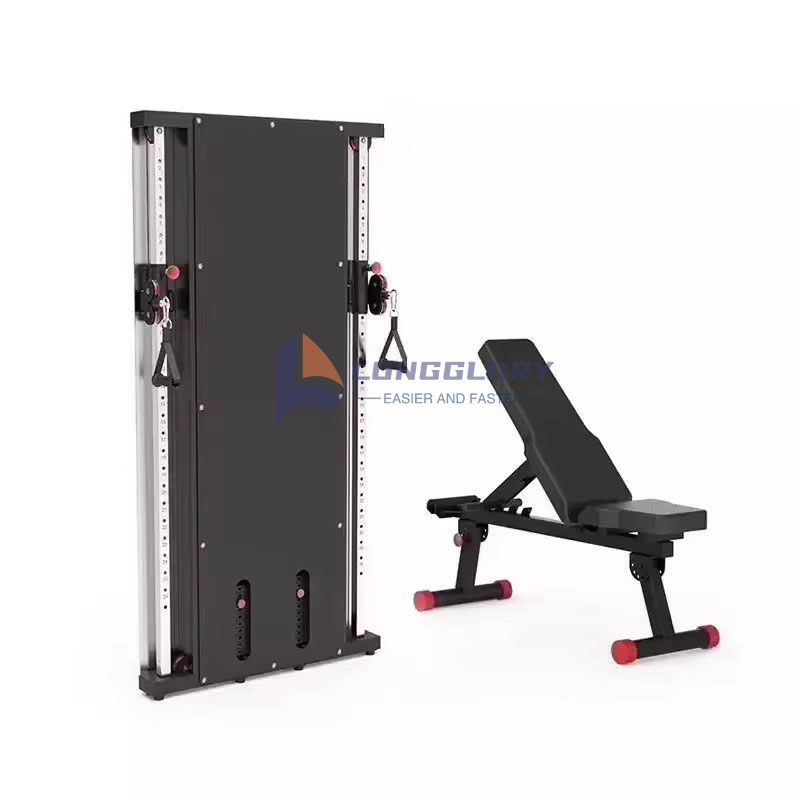 திறமையான பயிற்சி: சுவரில் பொருத்தப்பட்ட செயல்பாட்டு பயிற்சியாளர் இரட்டை கேபிள் கிராஸ்ஓவர் கட்டமைப்பை ஏற்றுக்கொள்கிறார் மற்றும் பதற்றம் பயிற்சிக்காக பல-செயல்பாட்டு புல்லிகளுடன் பொருத்தப்பட்டுள்ளது.